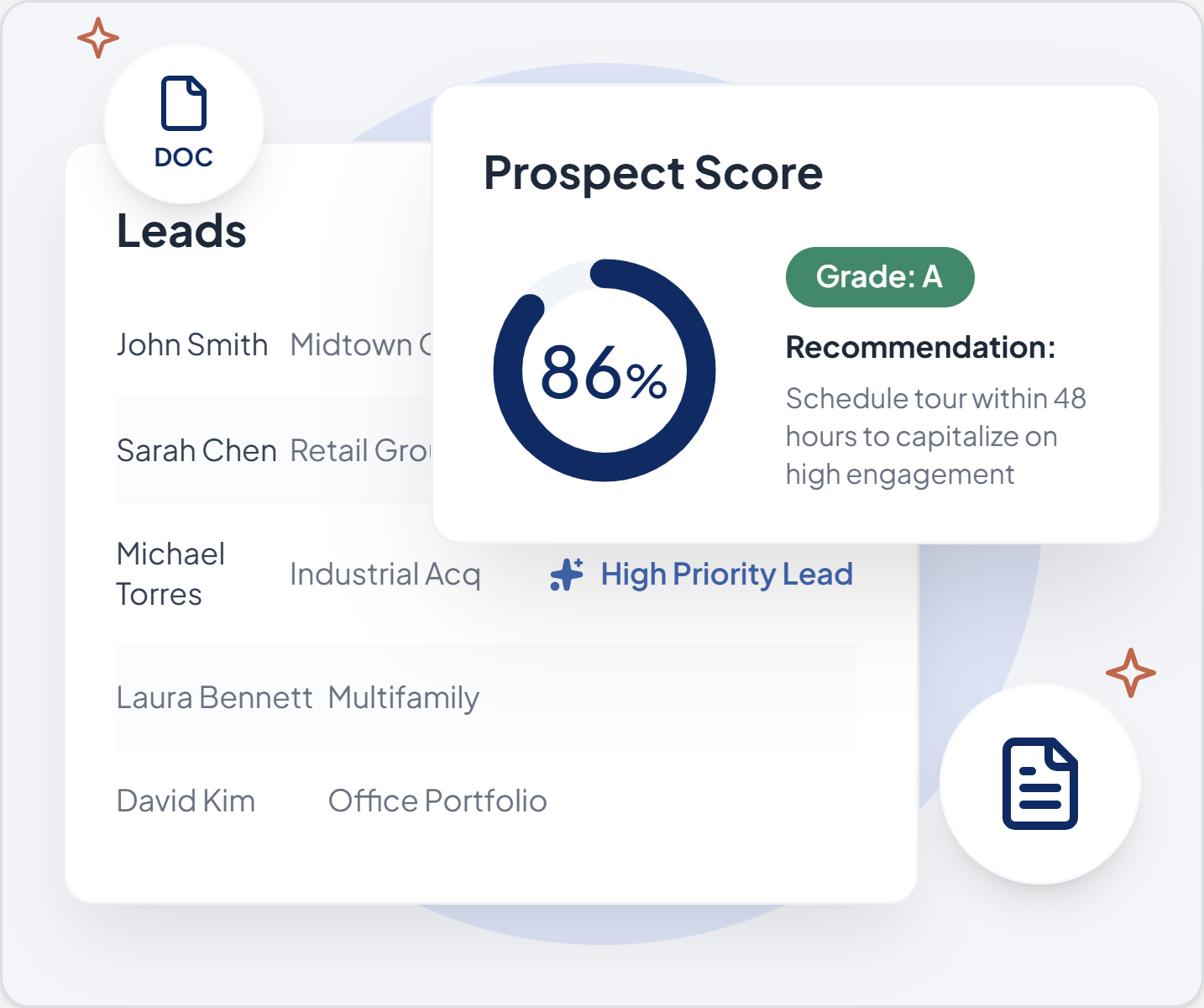 AI-driven scoring based on engagement and behavior automatically highlights high-intent prospects. Ensure faster response times and fewer missed opportunities with scoring logic configurable to your leasing criteria.